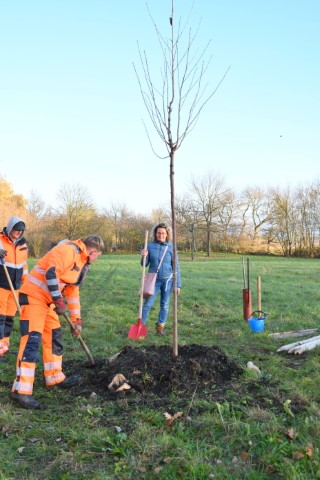 In Anlehnung an die Baumpflanzaktion vom 14. November griffen Bürgermeister Ralf Hauboldt, Lena Kob vom Stadtmarketing, Ulrich Braem, Leiter Bau- und Umweltamt, sowie Mitarbeiter des städtischen Betriebshofes am 23. November wieder zur Schaufel, um in Sömmerda mit weiteren neu gepflanzten Bäumen das Stadtgrün zu erweitern. Dies wiederum soll ein Beitrag sein, die Lebensqualität in der Kreisstadt zu erhöhen.