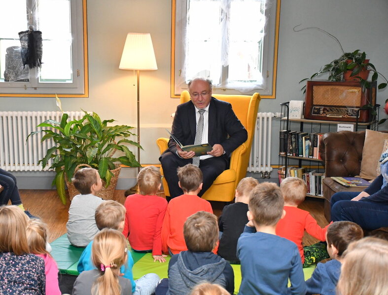 "Die Prominenz von heute liest für die Prominenz von morgen" ist die Vorlesekation der Stadt- und Kreisbibliothek Sömmerda überschrieben, die eine Woche lang mit verschiedenen Veranstaltungen läuft. Adressaten sind die Mädchen und Jungen in den städtischen Kindereinrichtungen sowie des Bonifatius-Kindergartens. Für die jungen Zuhörer aus der Bonifatius-Kita hatte Bürgermeister Ralf Hauboldt am 29.Oktober drei Geschichten ins Lesecafé der Stadt- und Kreisbibliohtek mitgebracht. Darin drehte es sich unter anderem um einen Besuch bei der Oma und um die kleine Hummel Bommel und die Zeit.