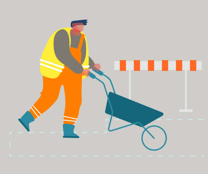 Grafische Darstellung eines Straßenbauarbeiters bei der Arbeit mit einer Schubkarre