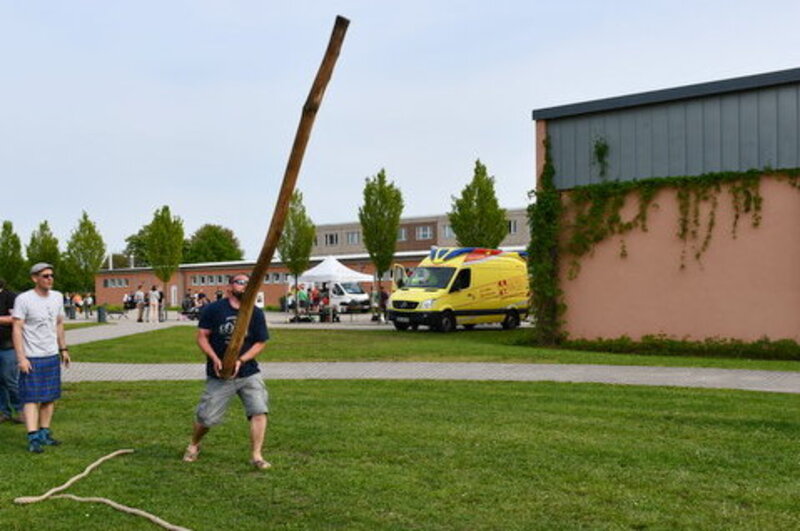 Uwe Friedrich probierte sich im Baumstammwerfen.
