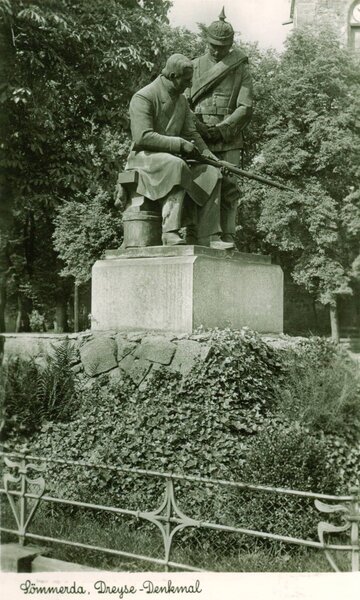 Der Sömmerdaer Heimat- und Geschichtsverein e.V. und der Schützenverein Nicolaus-von-Dreyse e.V. übergeben am 22. Mai um 16 Uhr das aus Spendengeldern und Fördermitteln finanzierte neue Denkmal für Nicolaus von Dreyse an die Stadt Sömmerda. Das ursprüngliche, 1909 auf dem Obermarkt errichtete Denkmal für den Erfinder des Zündnadelgewehrs wurde 1947 auf Veranlassung der sowjetischen Besatzungsbehörden eingeschmolzen. Das neue Denkmal im Historischen Rosengarten des Dreyse-Hauses nutzt den erhaltenen, originalen Sockel, während die neuen Denkmalfiguren den historischen Bronzeguss zeitgenössisch interpretieren. Das Dreyse-Denkmal regt zum Nachdenken darüber an, wie unterschiedlich zu verschiedenen Zeiten an den großen Sohn Sömmerdas erinnert wurde.